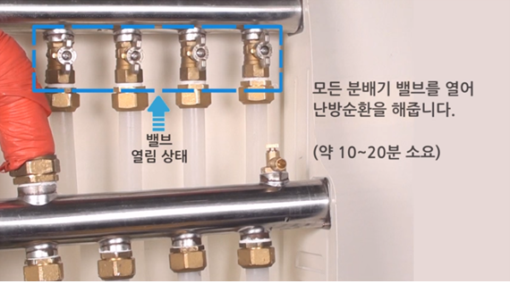 보일러 난방 분배기의 공기빼기 작업은 다음과 같이 진행합니다