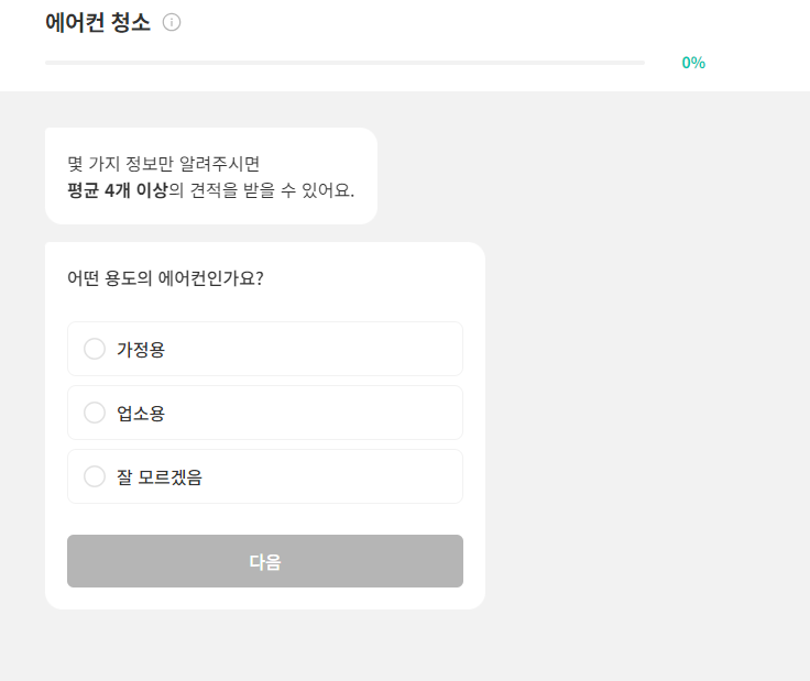 에어컨 청소 서비스를 선택한 후, 필요한 정보(위치, 서비스 종류, 일정 등)를 입력합니다.