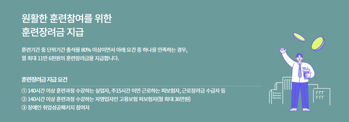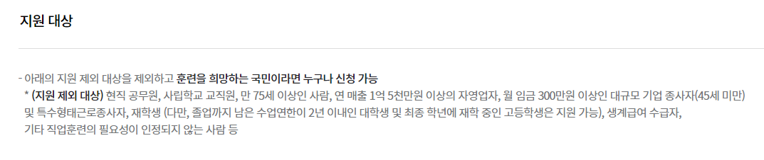 - 정부지원 훈련과정을 수강 중인 사람 등은 지원 대상에서 제외될 수 있음