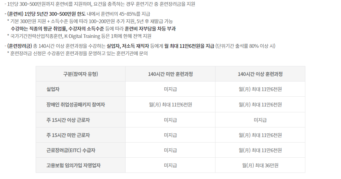 실제 훈련비 규모는 고용노동부 직업훈련포털 홈페이지에서 확인할 수 있습니다.