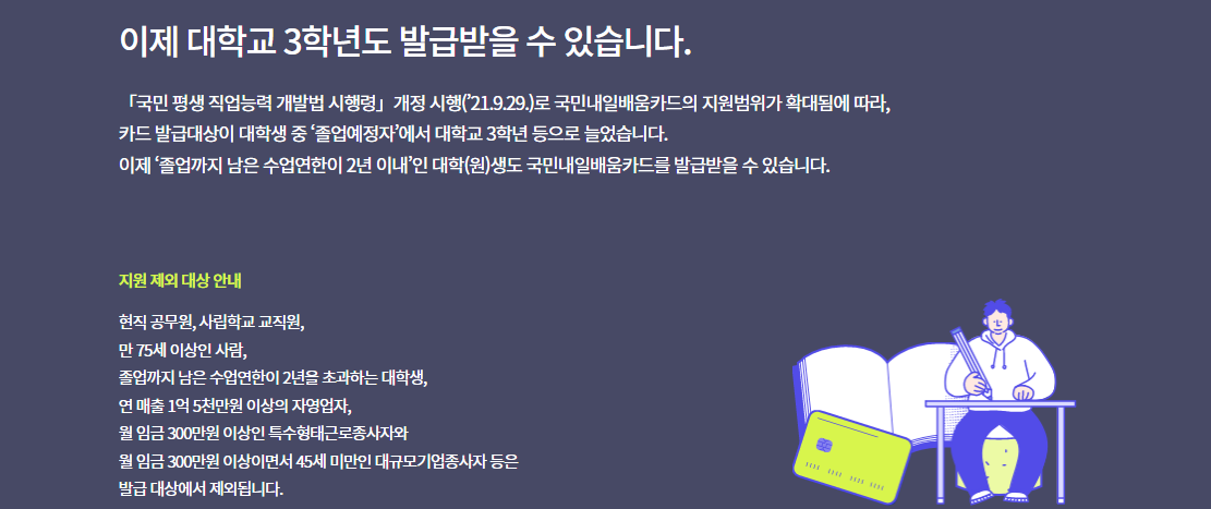 다음은 국민내일배움카드의 신청 자격에서 제외되는 대상입니다.