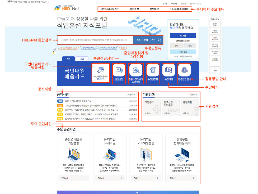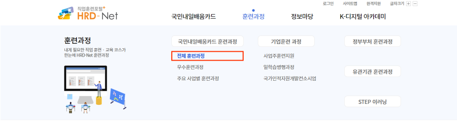 훈련 과정은 10,000 과정이 넘기 때문에 홈페이지에서 원하시는 과정 확인 해보시기 바랍니다.