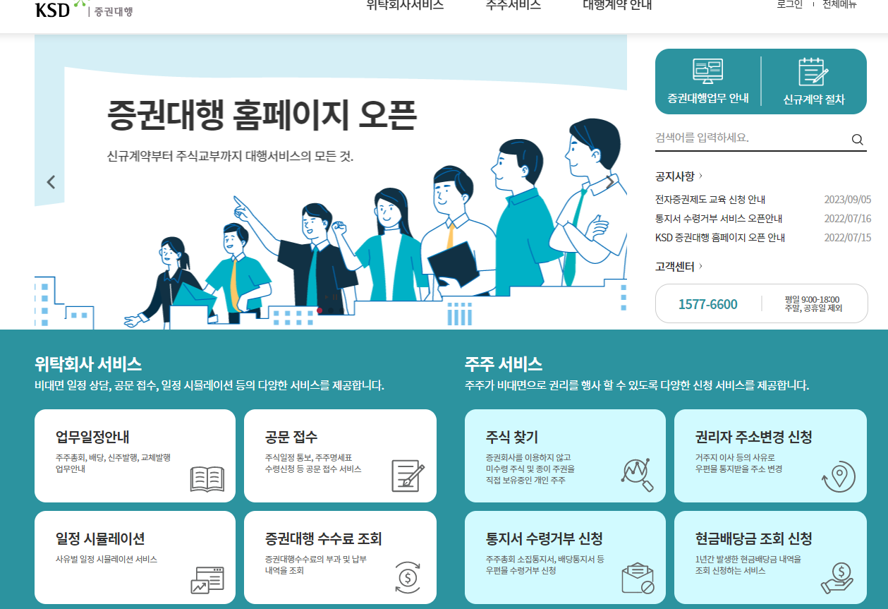 한국예탁결제원은 증권대행 주주 서비스를 통해 내방이 어려운 고객님께 다음과 같은 서비스를 제공하고 있습니다.