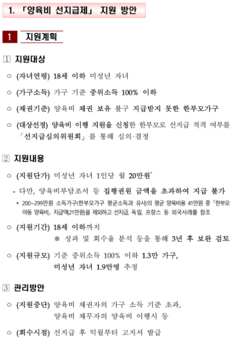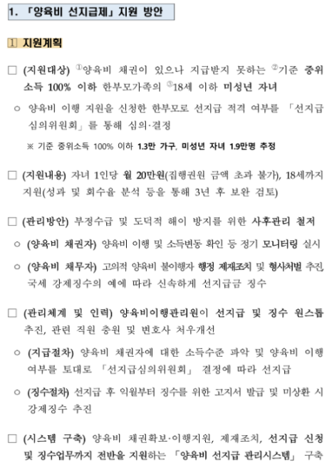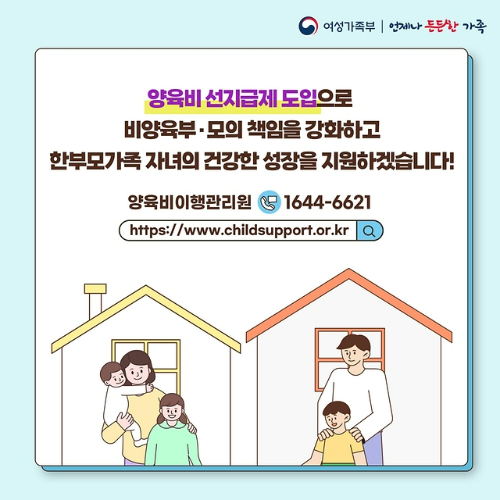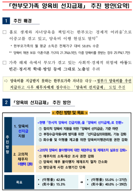 양육비 선지급제는 한 부모 가정에게 양육비를 미리 지급하고,