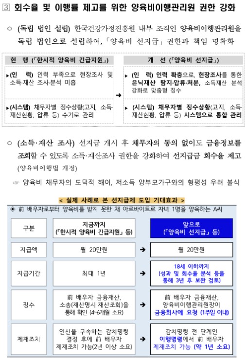양육비 미지급 문제를 해결하기 위한 것입니다.